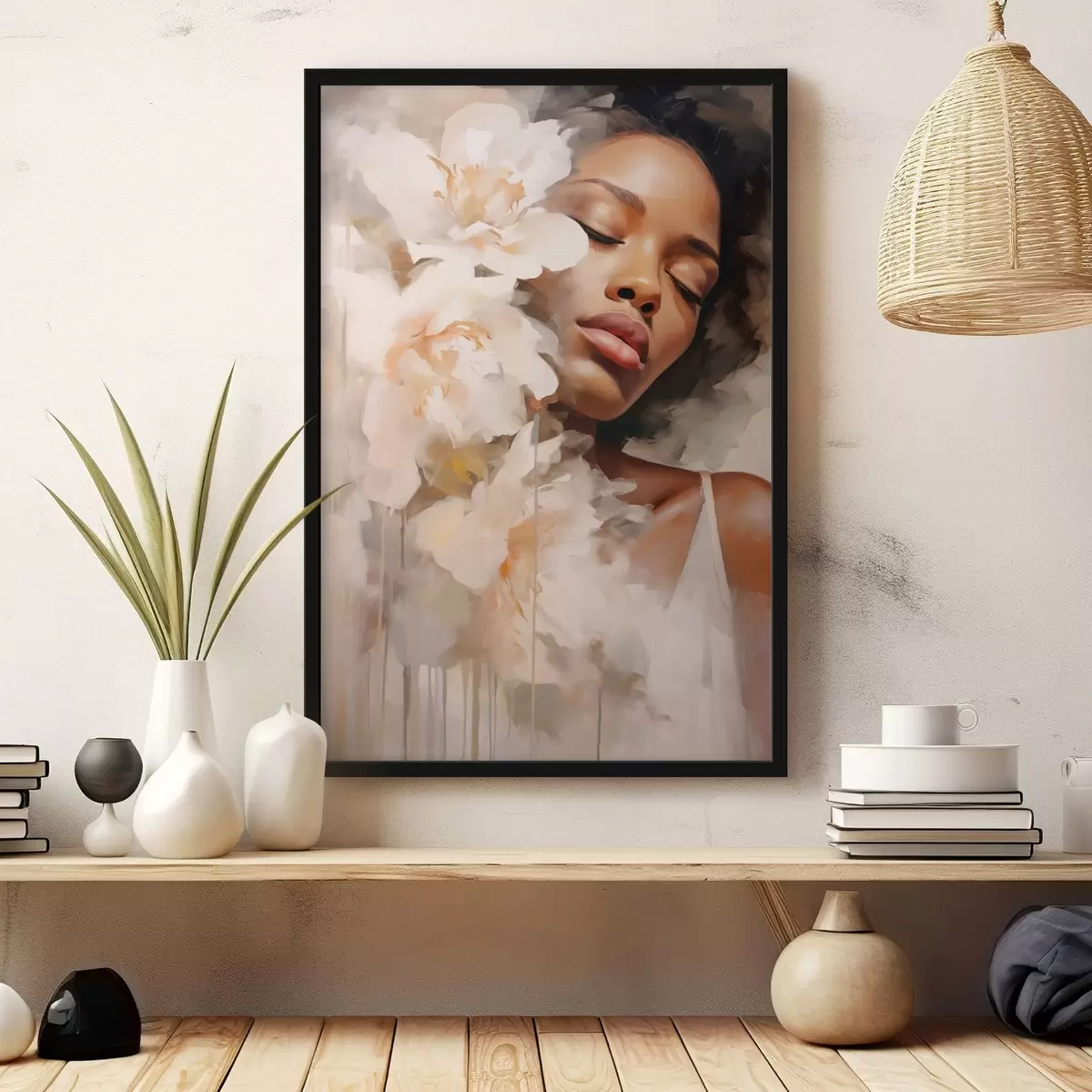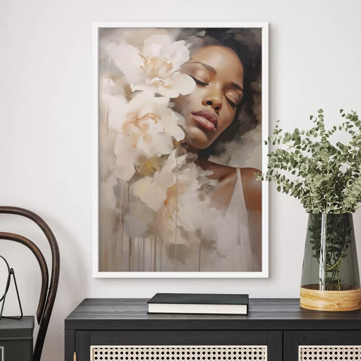 Poster Ritratto femminile accanto a grandi fiori Nr f47307