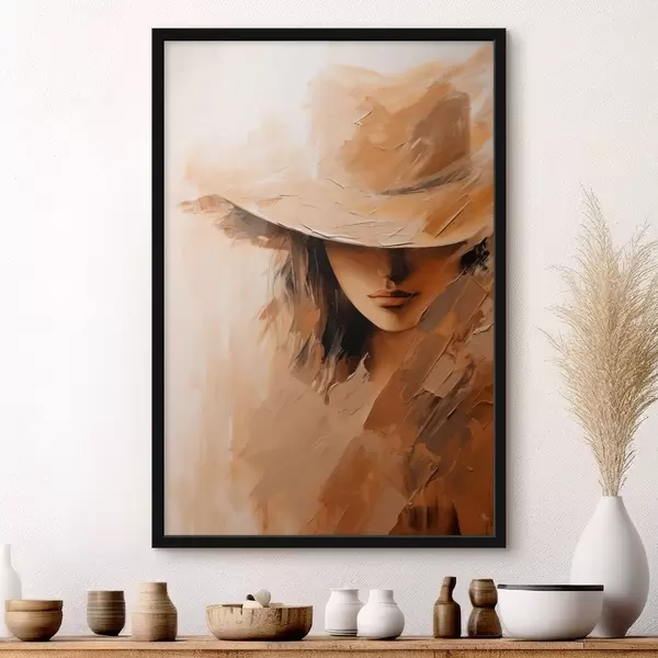 Poster Donna con cappello dipinta con pennellate calde e materiche Nr f47315