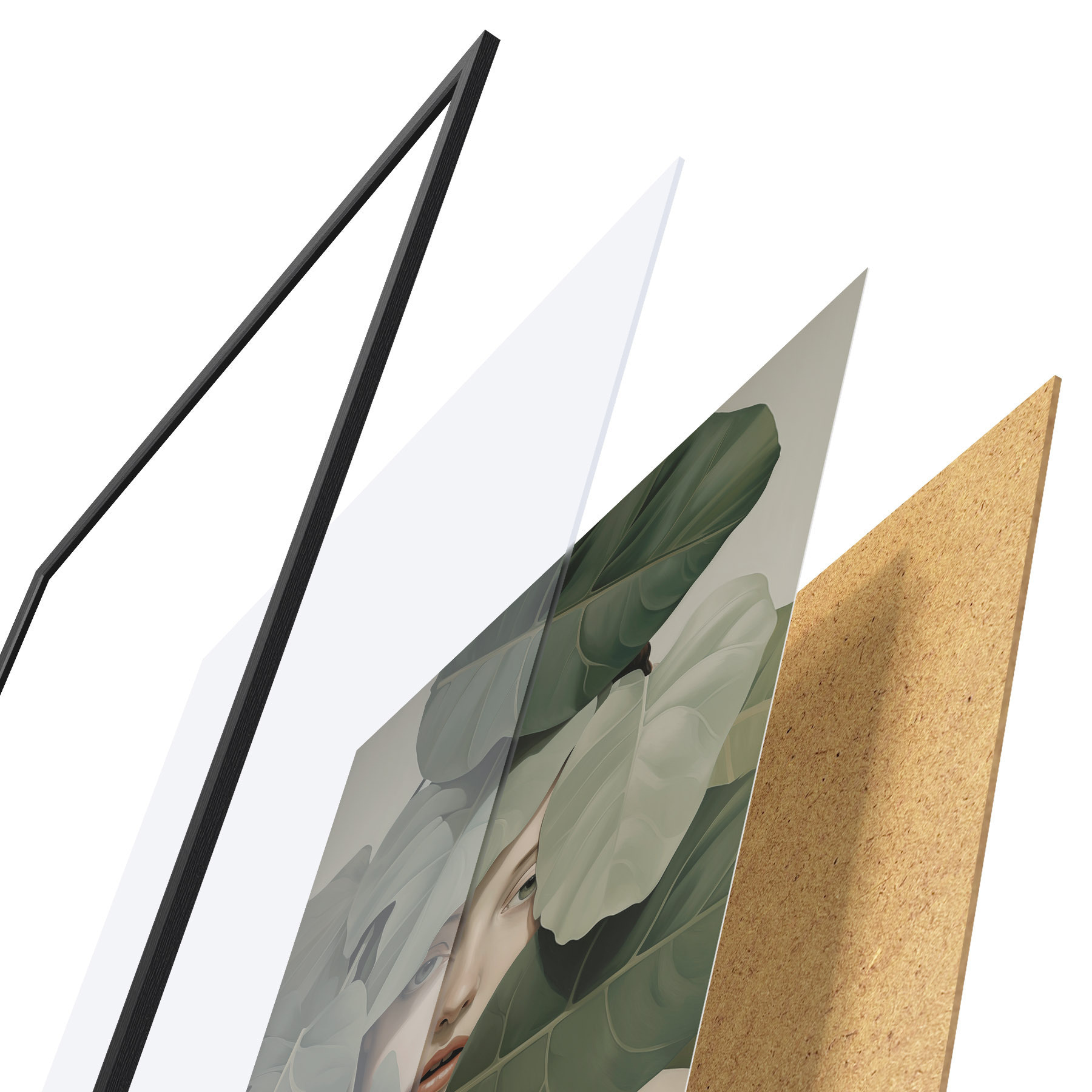 Il poster è composto da cornice, plexiglass, immagine stampata e supporto in truciolato. Il poster può essere immediatamente appeso alla parete grazie ai supporti sul retro.