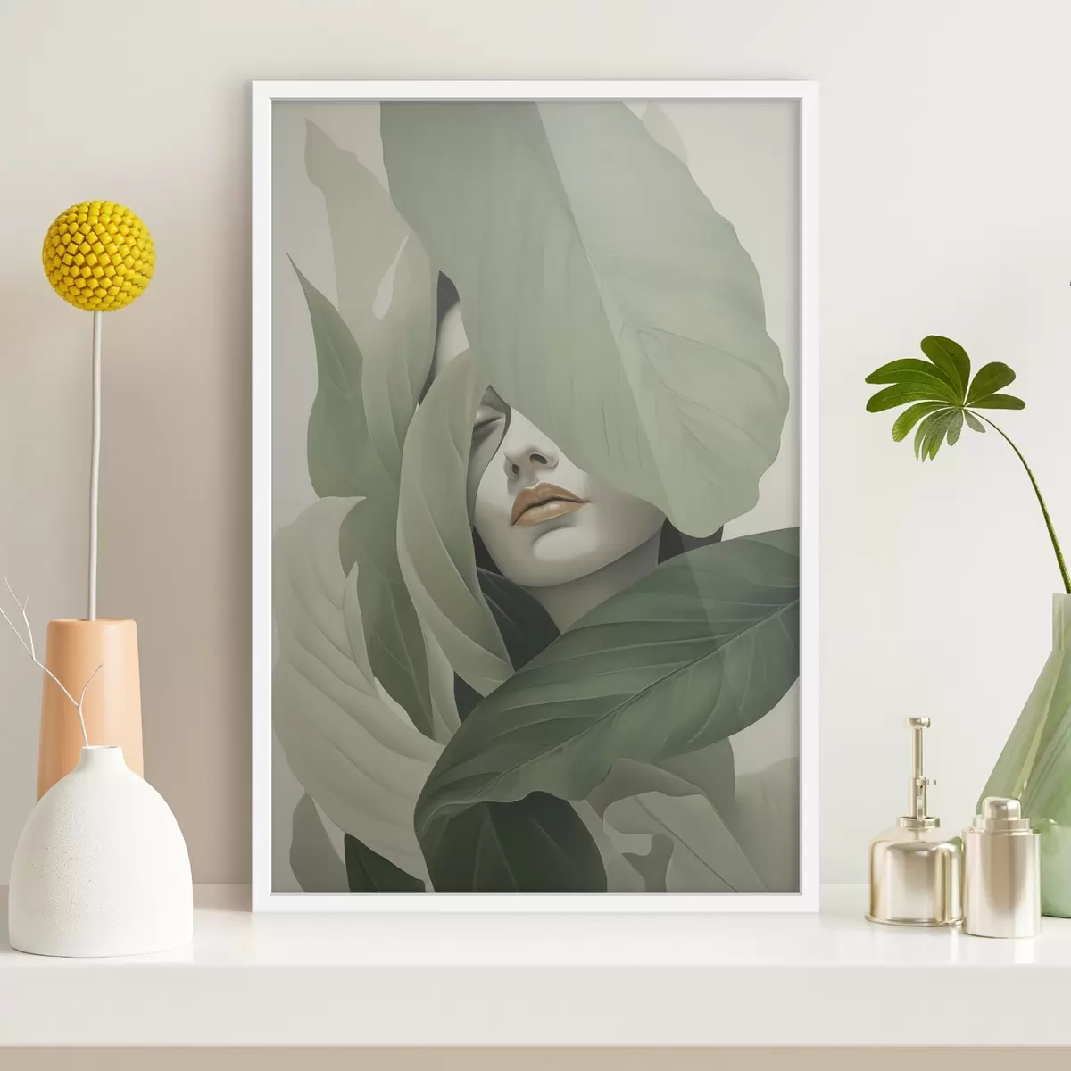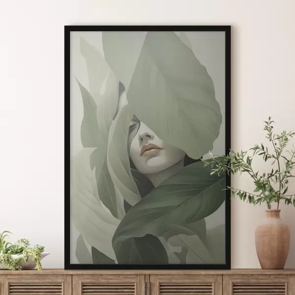 Poster Ritratto surreale di una ragazza tra il fogliame f47332