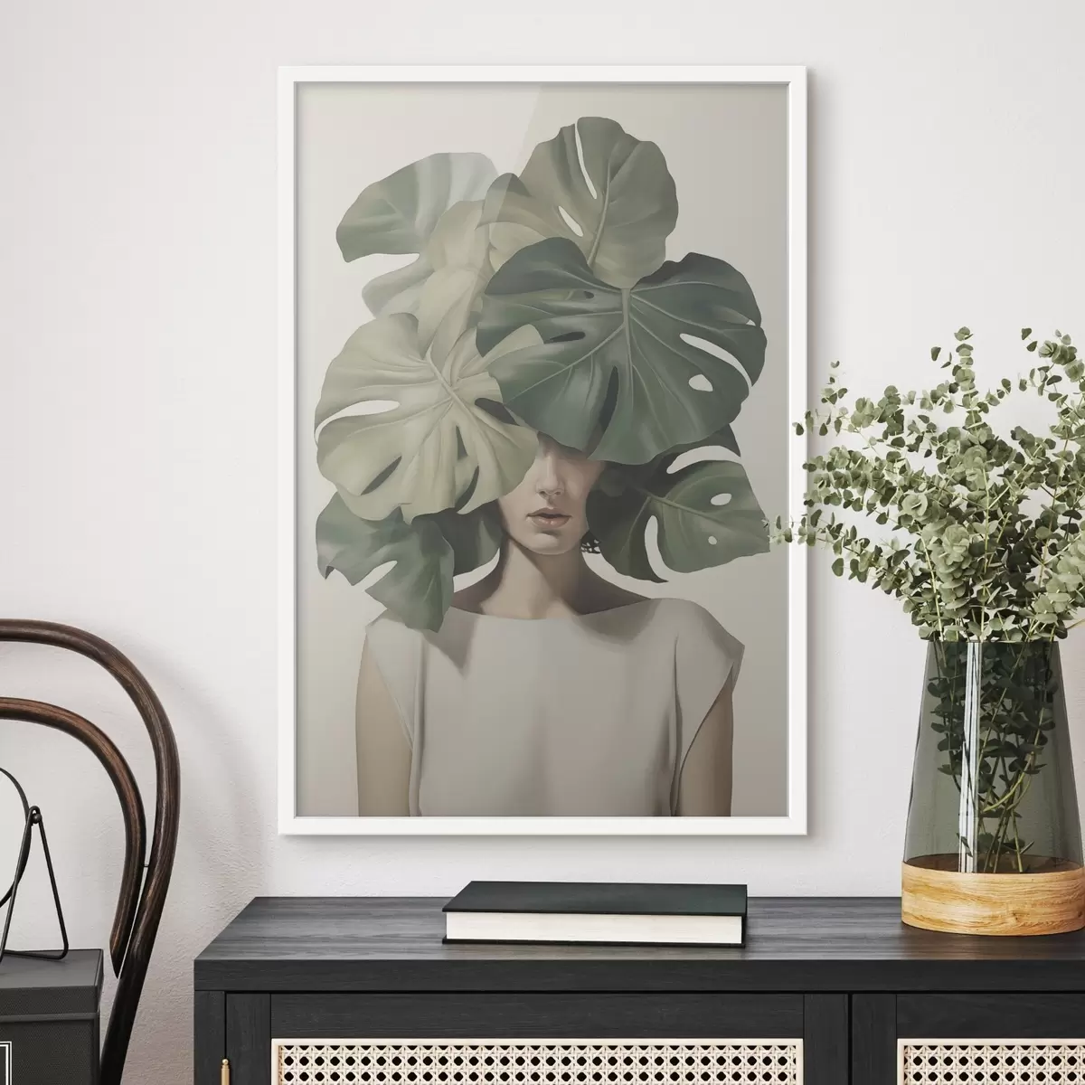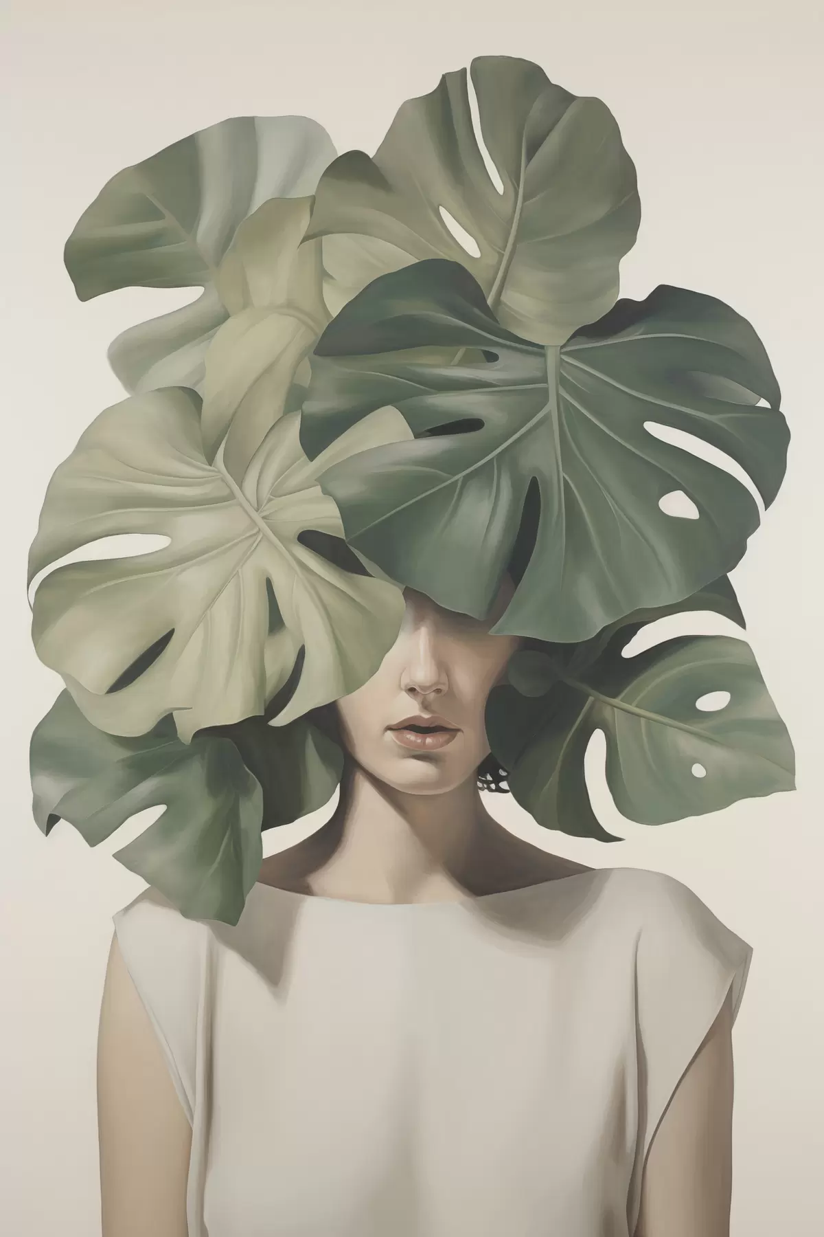 Poster Ritratto astratto di una ragazza con foglie di monstera Nr f47336