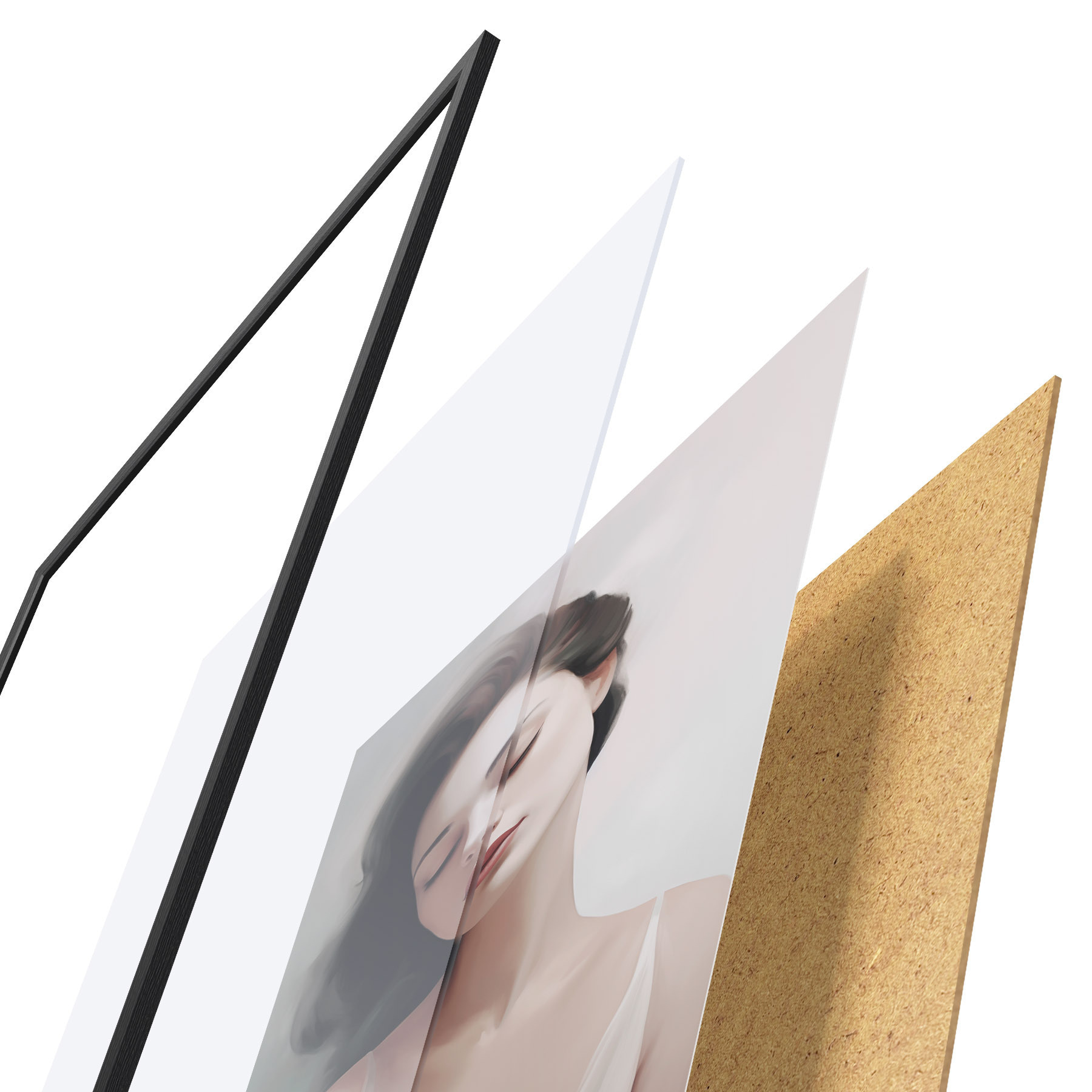Il poster è composto da cornice, plexiglass, immagine stampata e supporto in truciolato. Il poster può essere immediatamente appeso alla parete grazie ai supporti sul retro.