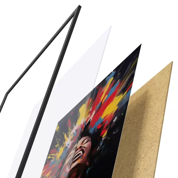 Il poster è composto da cornice, plexiglass, immagine stampata e supporto in truciolato. Il poster può essere immediatamente appeso alla parete grazie ai supporti sul retro.