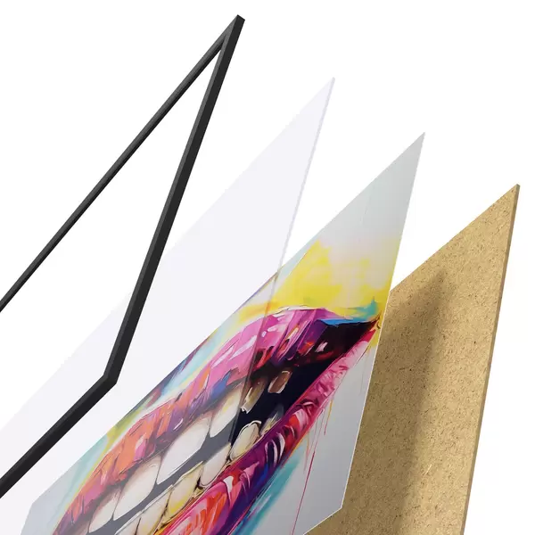 Il poster è composto da cornice, plexiglass, immagine stampata e supporto in truciolato. Il poster può essere immediatamente appeso alla parete grazie ai supporti sul retro.