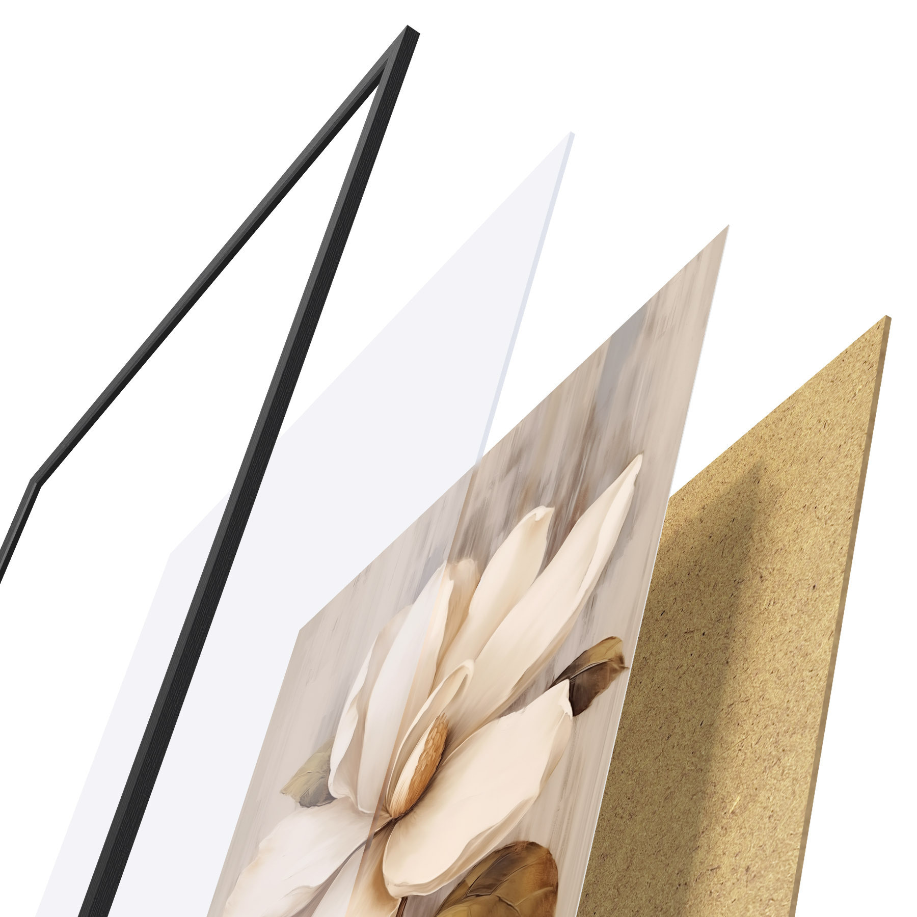 Il poster è composto da cornice, plexiglass, immagine stampata e supporto in truciolato. Il poster può essere immediatamente appeso alla parete grazie ai supporti sul retro.