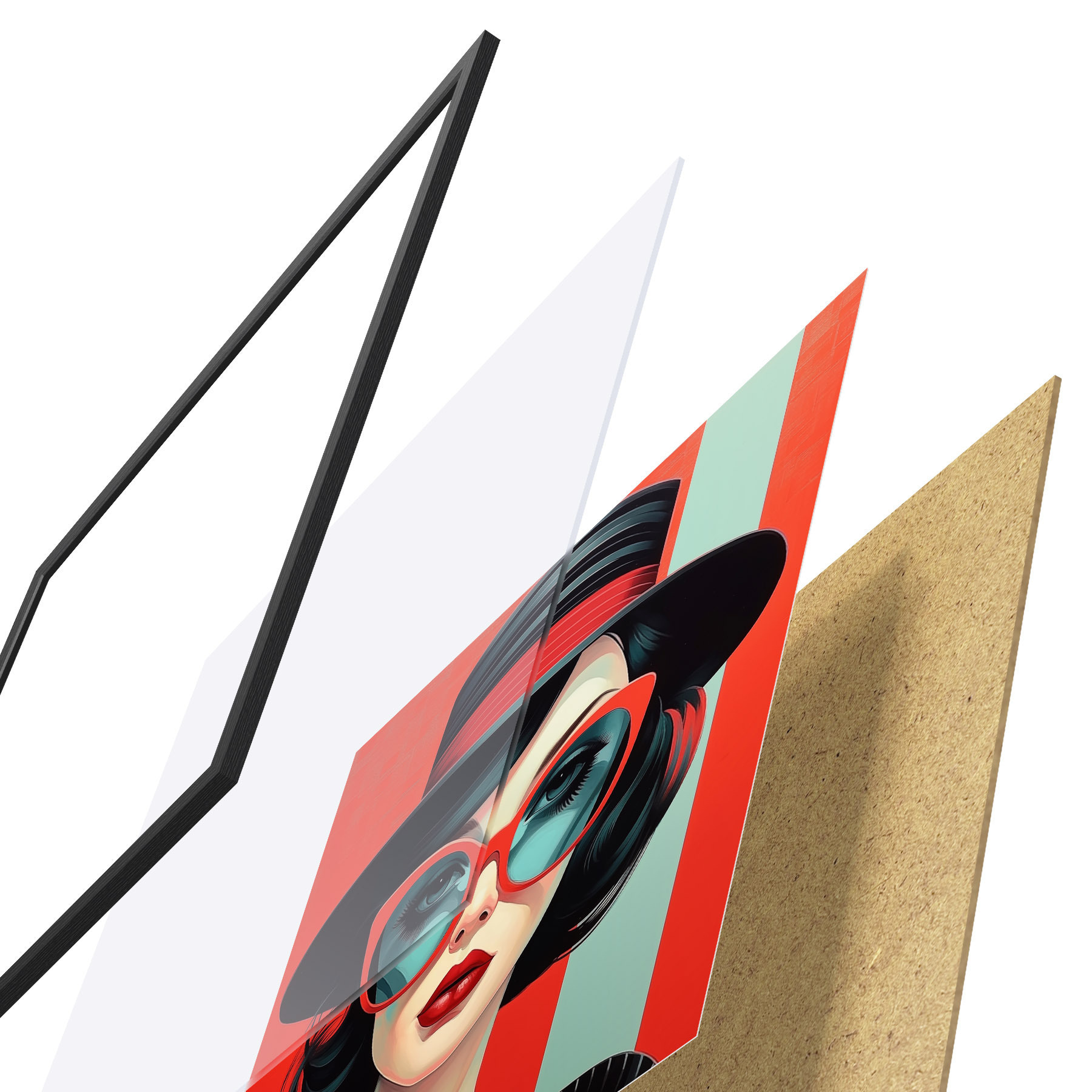 Il poster è composto da cornice, plexiglass, immagine stampata e supporto in truciolato. Il poster può essere immediatamente appeso alla parete grazie ai supporti sul retro.