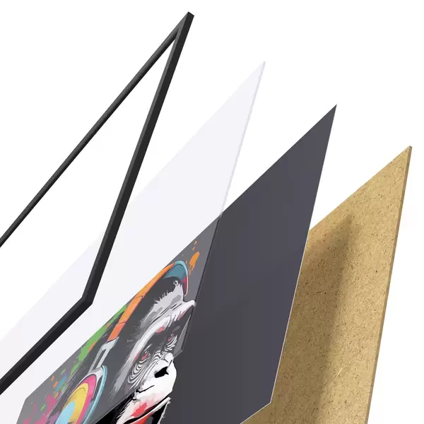 Il poster è composto da cornice, plexiglass, immagine stampata e supporto in truciolato. Il poster può essere immediatamente appeso alla parete grazie ai supporti sul retro.