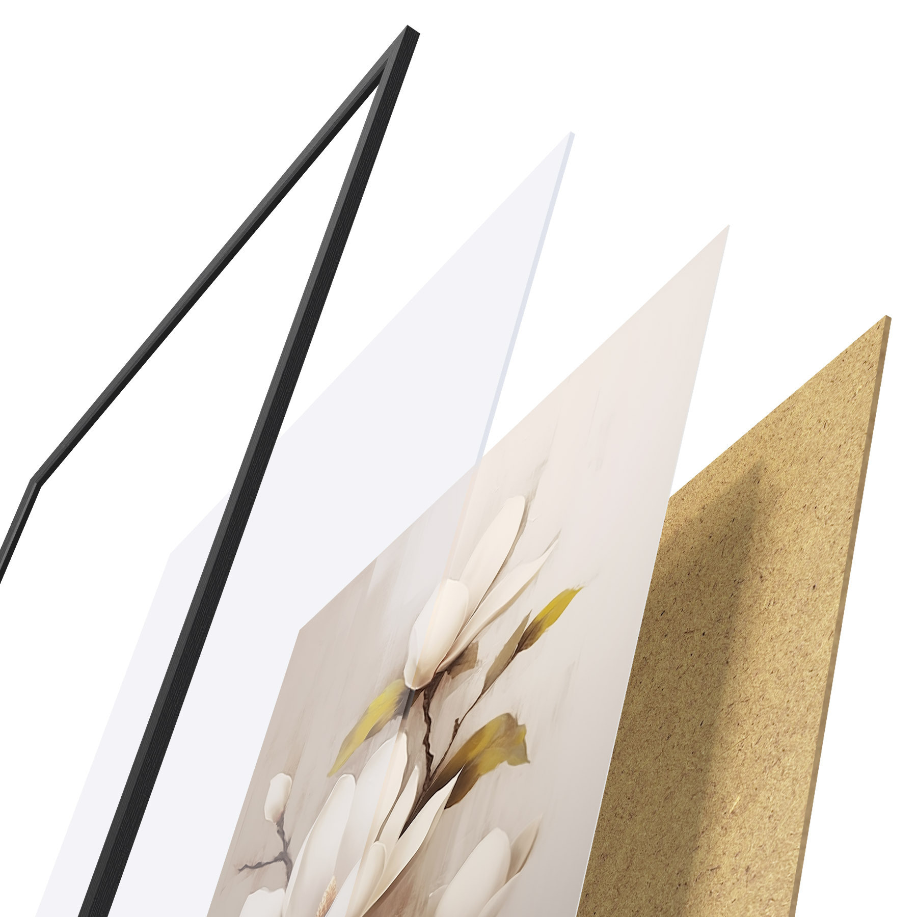 Il poster è composto da cornice, plexiglass, immagine stampata e supporto in truciolato. Il poster può essere immediatamente appeso alla parete grazie ai supporti sul retro.