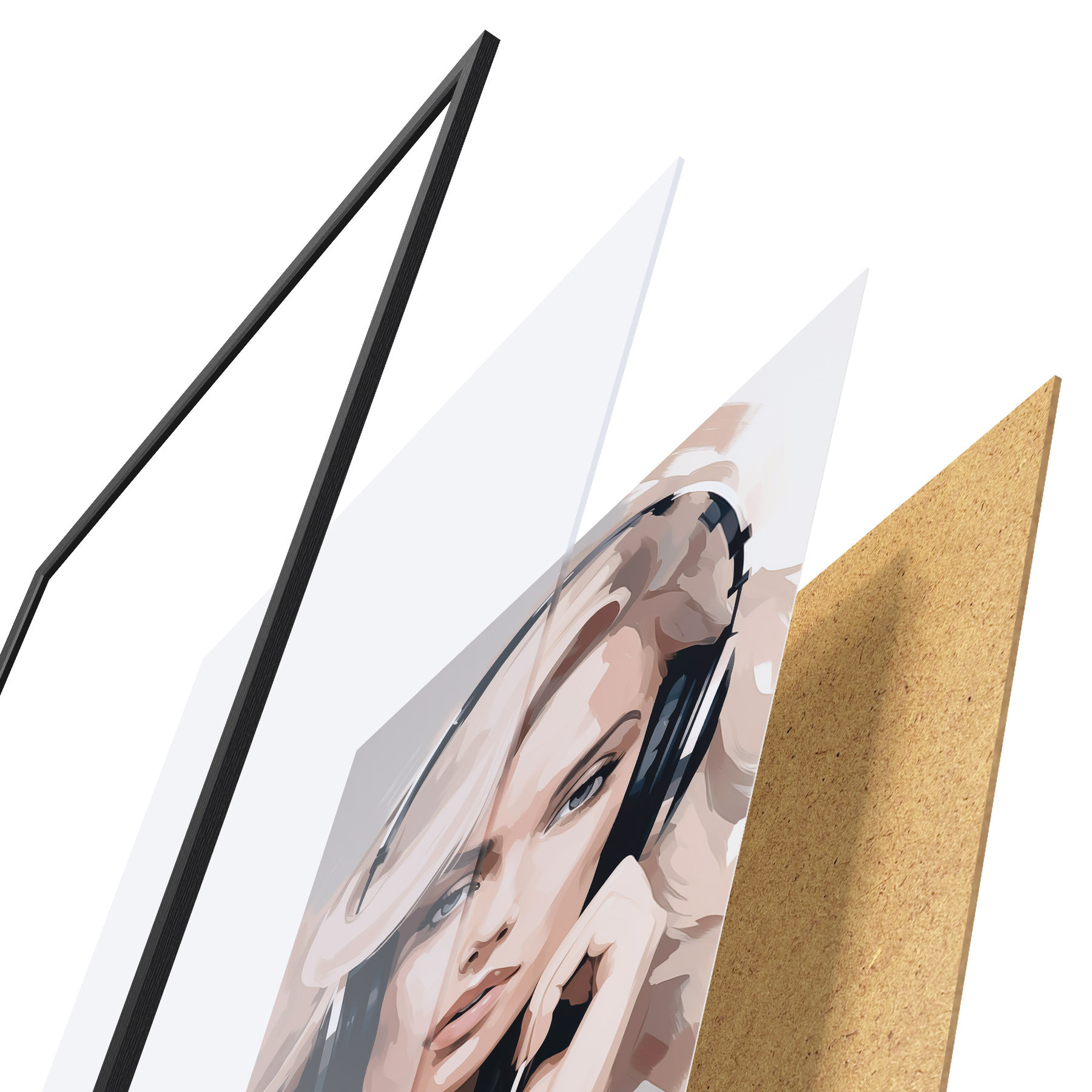 Il poster è composto da cornice, plexiglass, immagine stampata e supporto in truciolato. Il poster può essere immediatamente appeso alla parete grazie ai supporti sul retro.