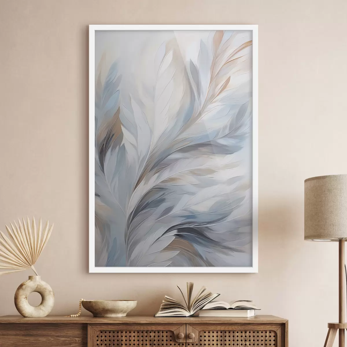 Poster Delicate piume azzurre e marroni dalla consistenza morbida ed eterea, su sfondo bianco. Nr f47416