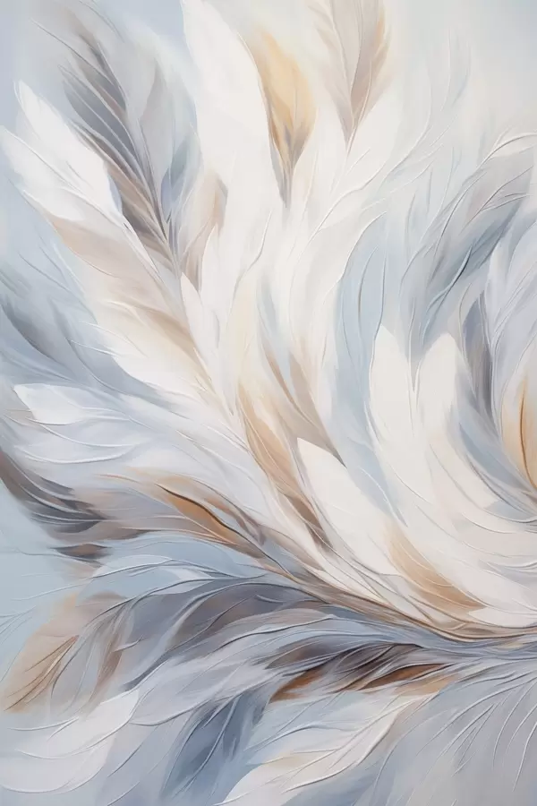 Poster Dipinto astratto di piume nei toni del bianco, blu e marrone, con una texture morbida e fluida e uno sfondo chiaro. f47417