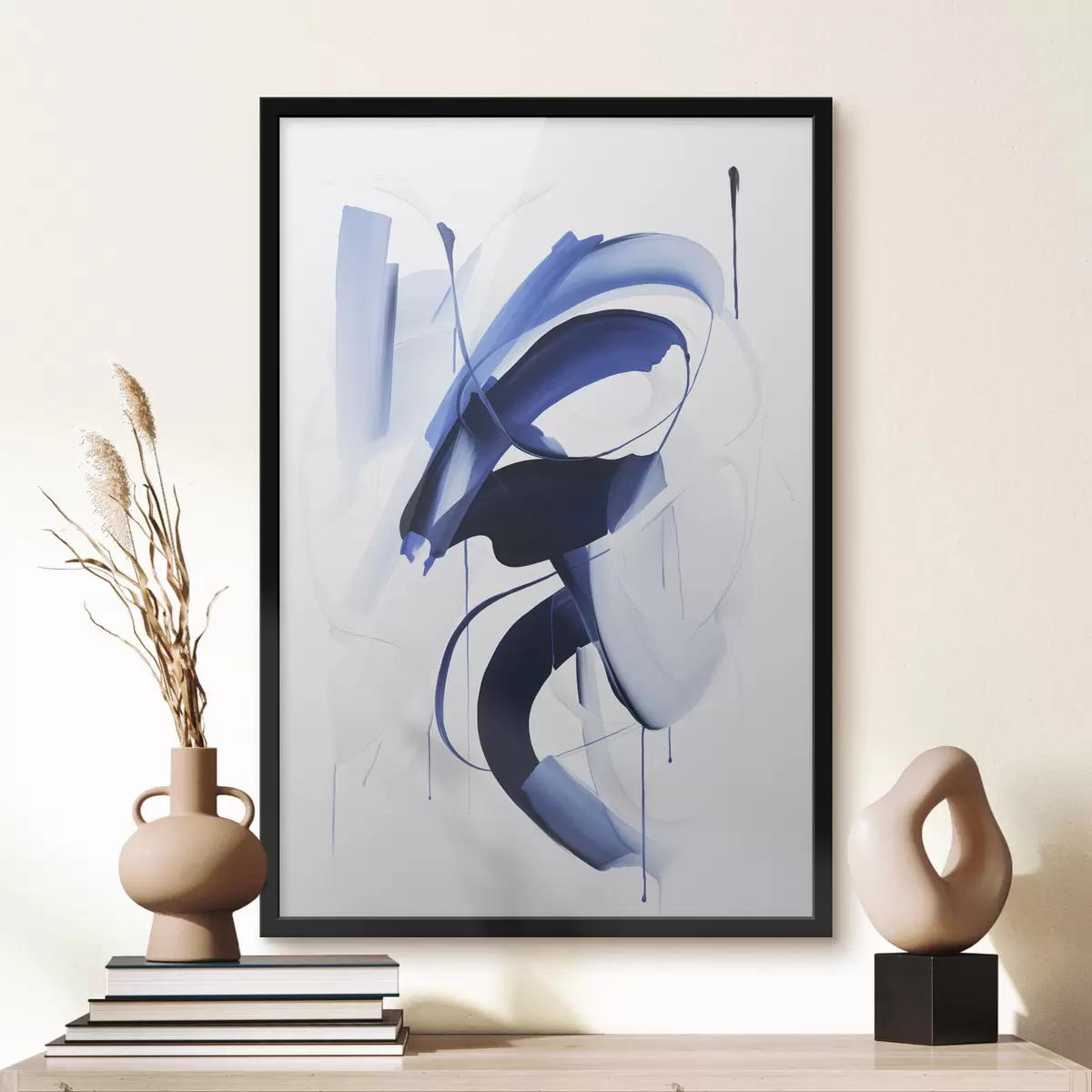 Poster Forme astratte blu simili a pennellate con linee fluide e curve su sfondo bianco, arte moderna Nr f47428