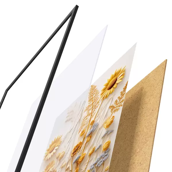 Il poster è composto da cornice, plexiglass, immagine stampata e supporto in truciolato. Il poster può essere immediatamente appeso alla parete grazie ai supporti sul retro.