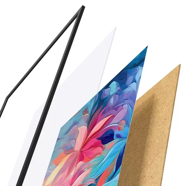 Il poster è composto da cornice, plexiglass, immagine stampata e supporto in truciolato. Il poster può essere immediatamente appeso alla parete grazie ai supporti sul retro.