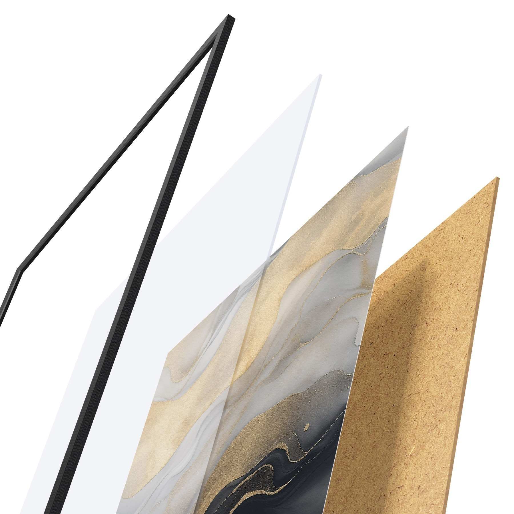 Il poster è composto da cornice, plexiglass, immagine stampata e supporto in truciolato. Il poster può essere immediatamente appeso alla parete grazie ai supporti sul retro.