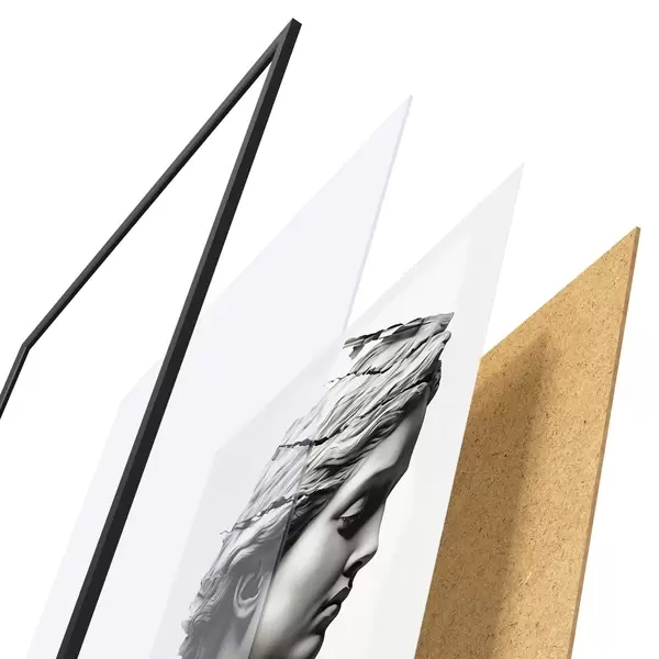 Il poster è composto da cornice, plexiglass, immagine stampata e supporto in truciolato. Il poster può essere immediatamente appeso alla parete grazie ai supporti sul retro.