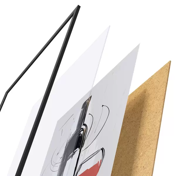 Il poster è composto da cornice, plexiglass, immagine stampata e supporto in truciolato. Il poster può essere immediatamente appeso alla parete grazie ai supporti sul retro.