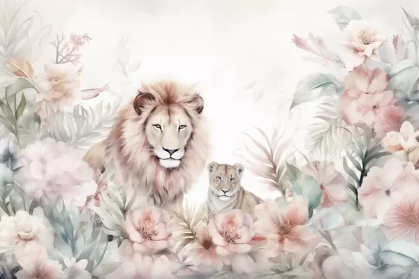 Poster Leoni nella boscaglia tropicale, acquerello imitazione Nr f47640