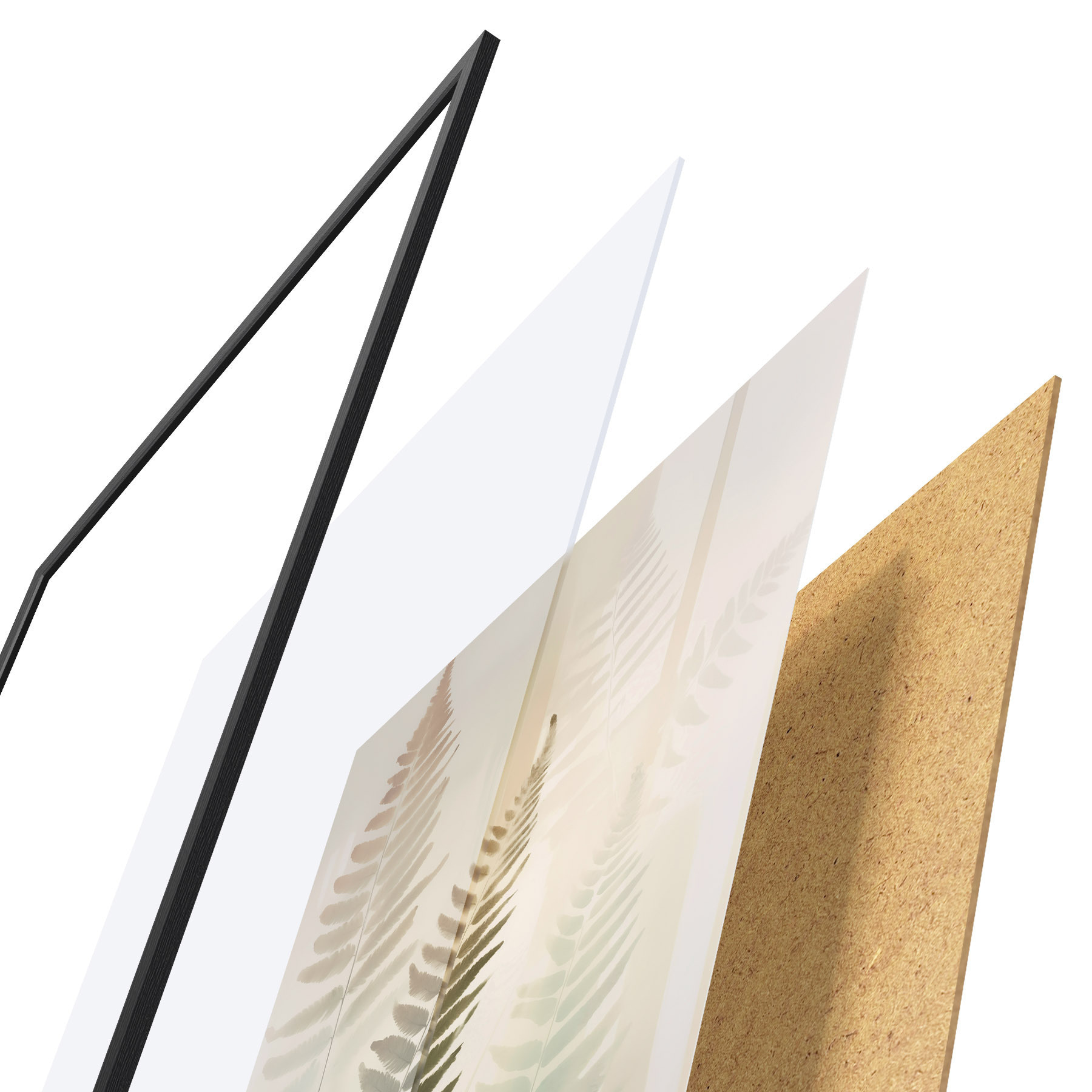 Il poster è composto da cornice, plexiglass, immagine stampata e supporto in truciolato. Il poster può essere immediatamente appeso alla parete grazie ai supporti sul retro.