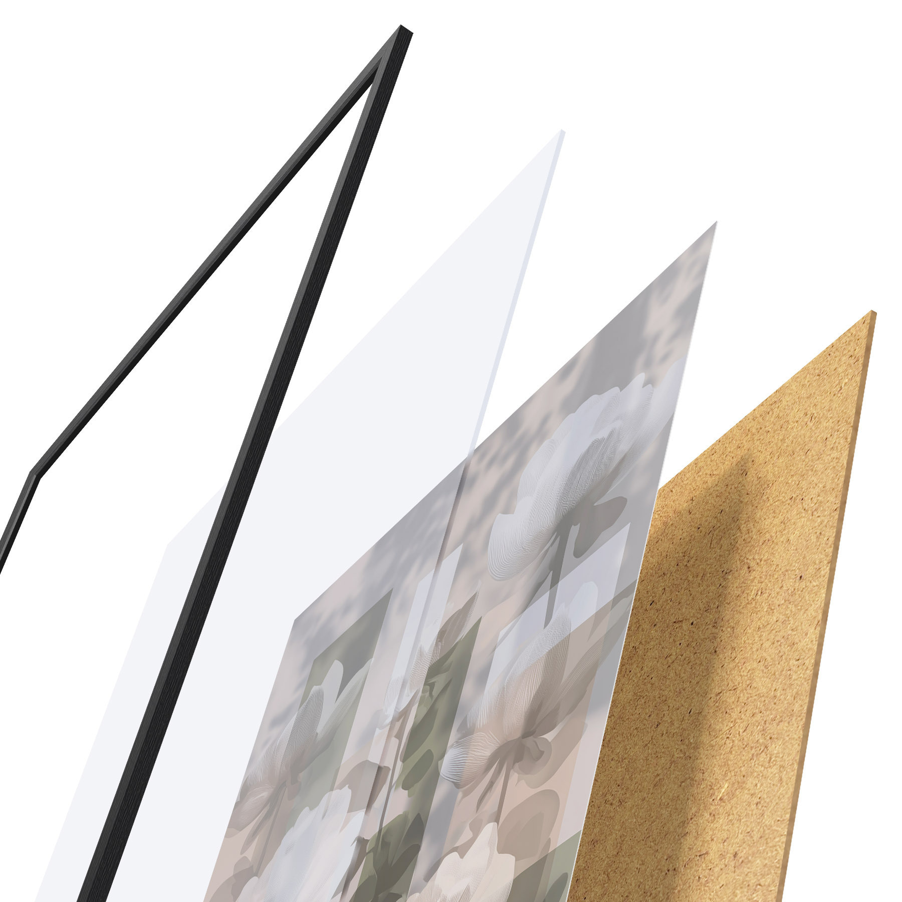 Il poster è composto da cornice, plexiglass, immagine stampata e supporto in truciolato. Il poster può essere immediatamente appeso alla parete grazie ai supporti sul retro.