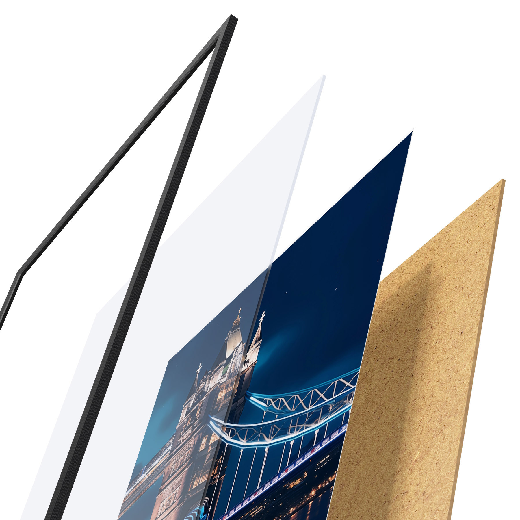 Il poster è composto da cornice, plexiglass, immagine stampata e supporto in truciolato. Il poster può essere immediatamente appeso alla parete grazie ai supporti sul retro.