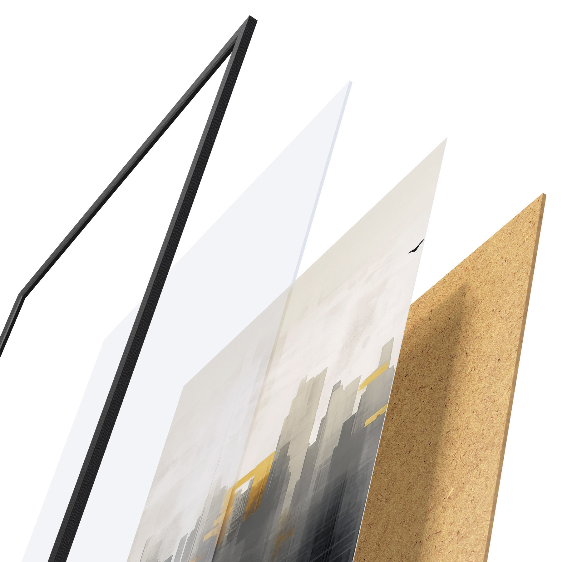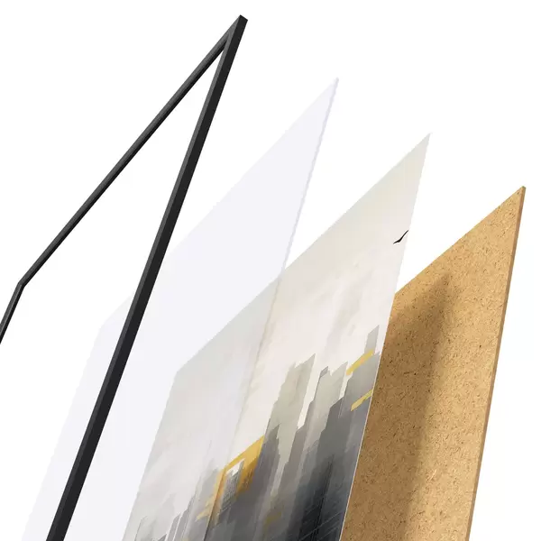 Il poster è composto da cornice, plexiglass, immagine stampata e supporto in truciolato. Il poster può essere immediatamente appeso alla parete grazie ai supporti sul retro.