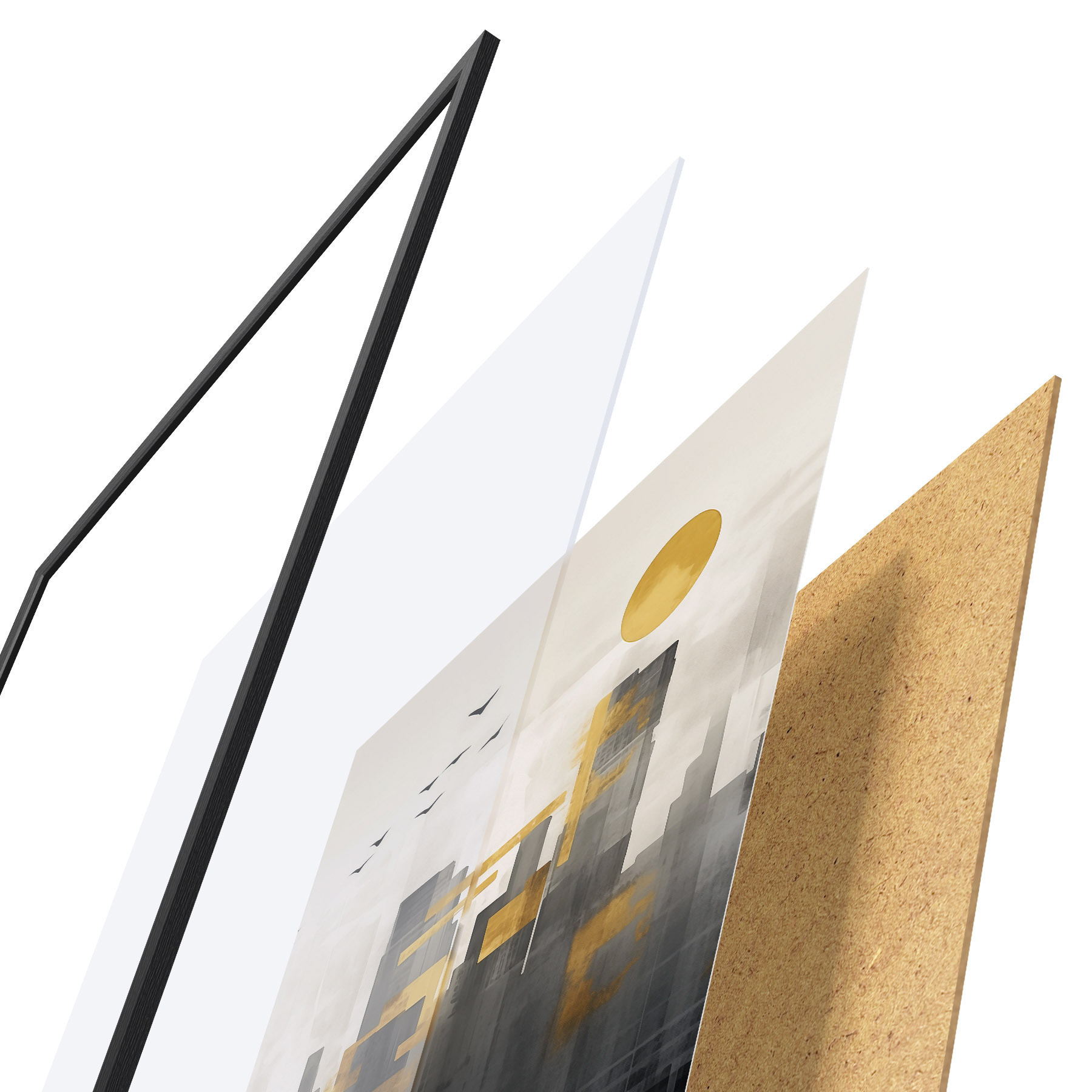 Il poster è composto da cornice, plexiglass, immagine stampata e supporto in truciolato. Il poster può essere immediatamente appeso alla parete grazie ai supporti sul retro.
