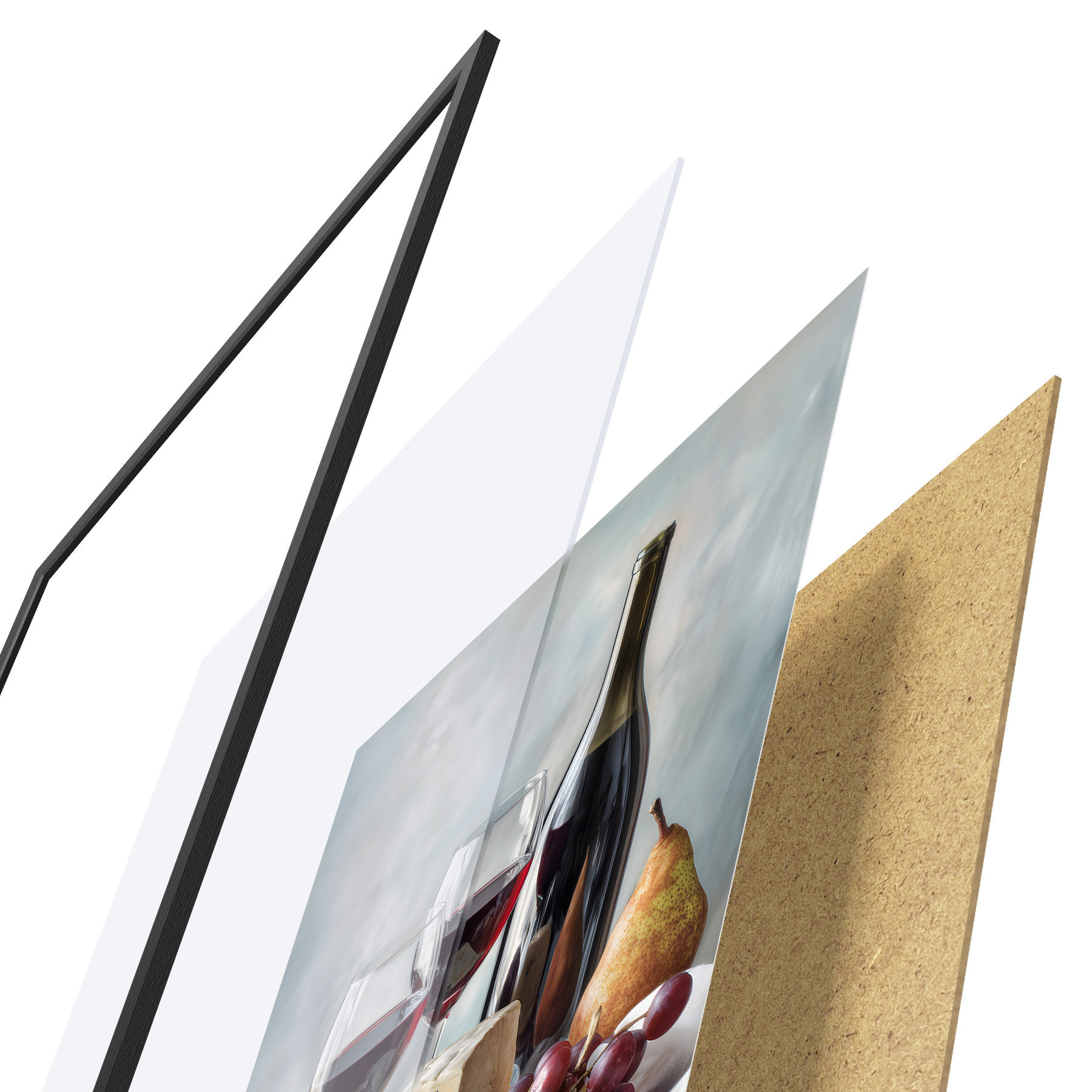 Il poster è composto da cornice, plexiglass, immagine stampata e supporto in truciolato. Il poster può essere immediatamente appeso alla parete grazie ai supporti sul retro.
