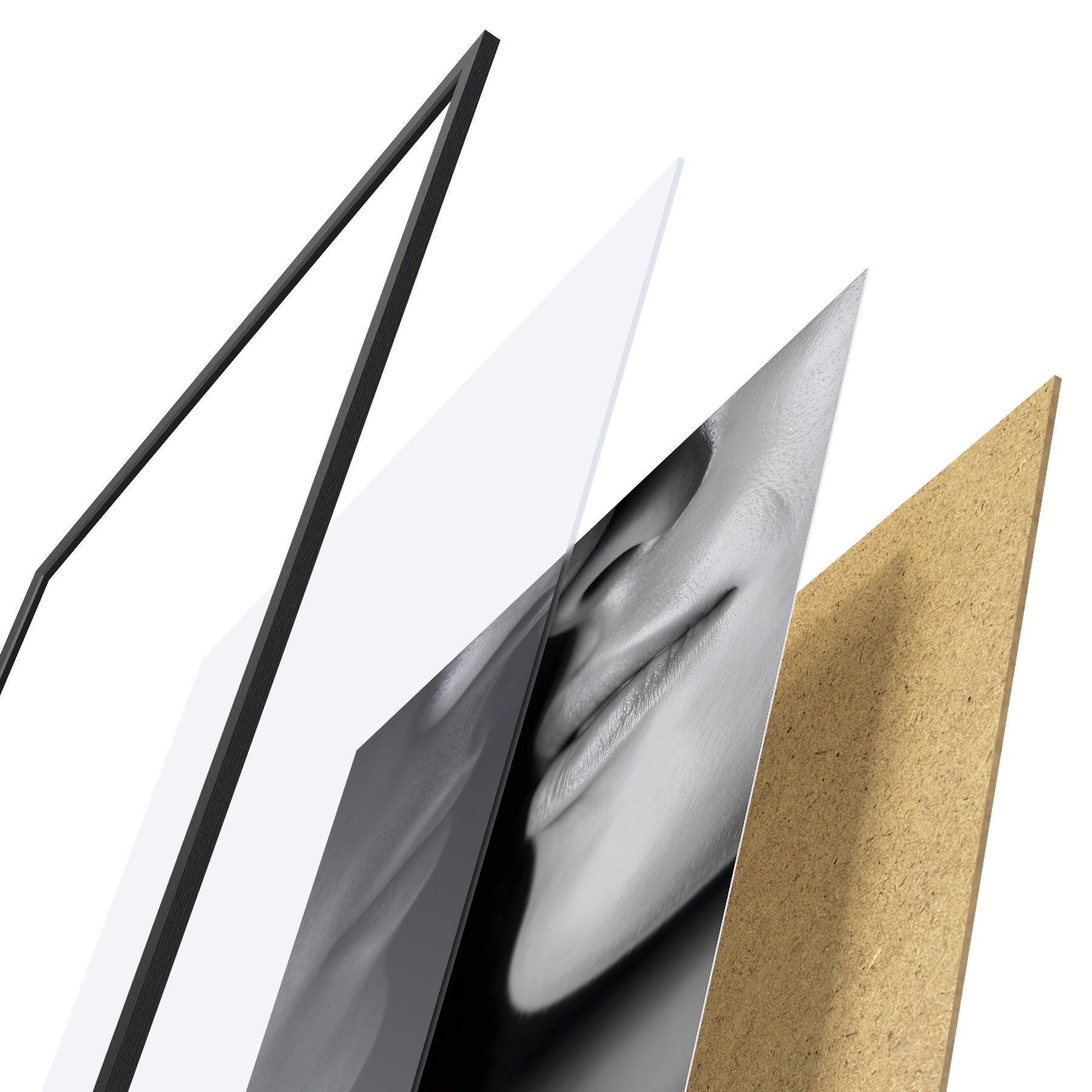 Il poster è composto da cornice, plexiglass, immagine stampata e supporto in truciolato. Il poster può essere immediatamente appeso alla parete grazie ai supporti sul retro.