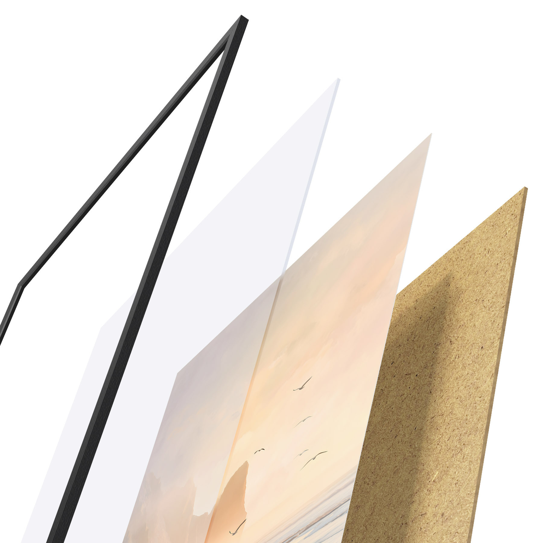 Il poster è composto da cornice, plexiglass, immagine stampata e supporto in truciolato. Il poster può essere immediatamente appeso alla parete grazie ai supporti sul retro.