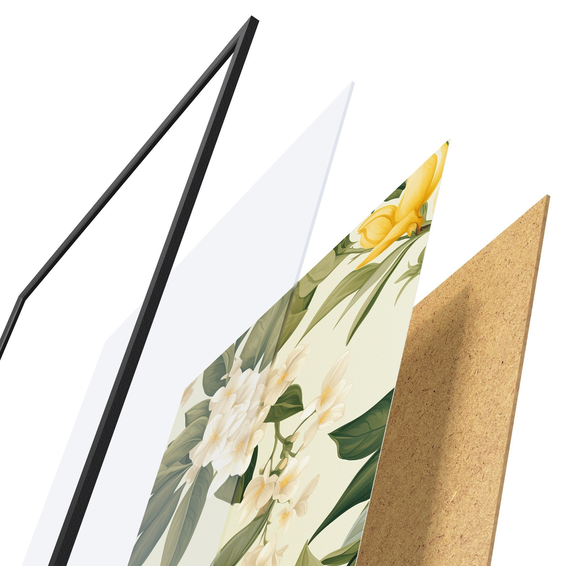 Il poster è composto da cornice, plexiglass, immagine stampata e supporto in truciolato. Il poster può essere immediatamente appeso alla parete grazie ai supporti sul retro.