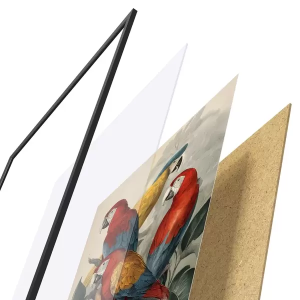 Il poster è composto da cornice, plexiglass, immagine stampata e supporto in truciolato. Il poster può essere immediatamente appeso alla parete grazie ai supporti sul retro.