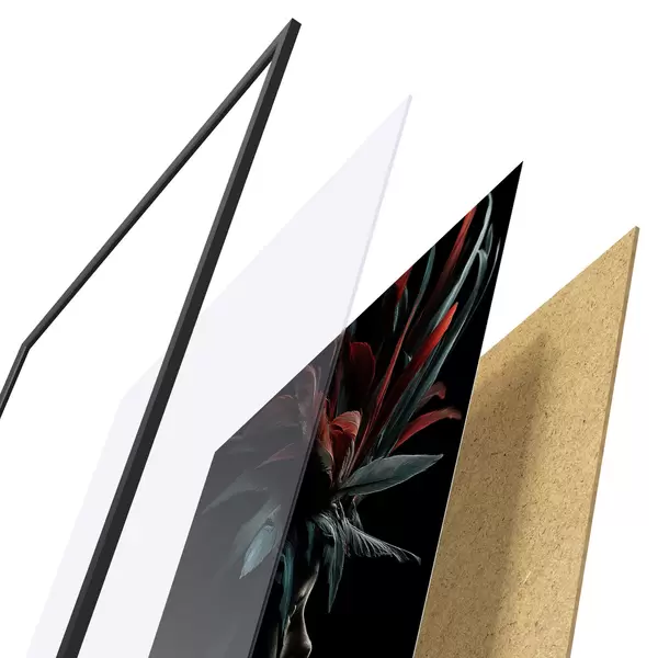 Il poster è composto da cornice, plexiglass, immagine stampata e supporto in truciolato. Il poster può essere immediatamente appeso alla parete grazie ai supporti sul retro.