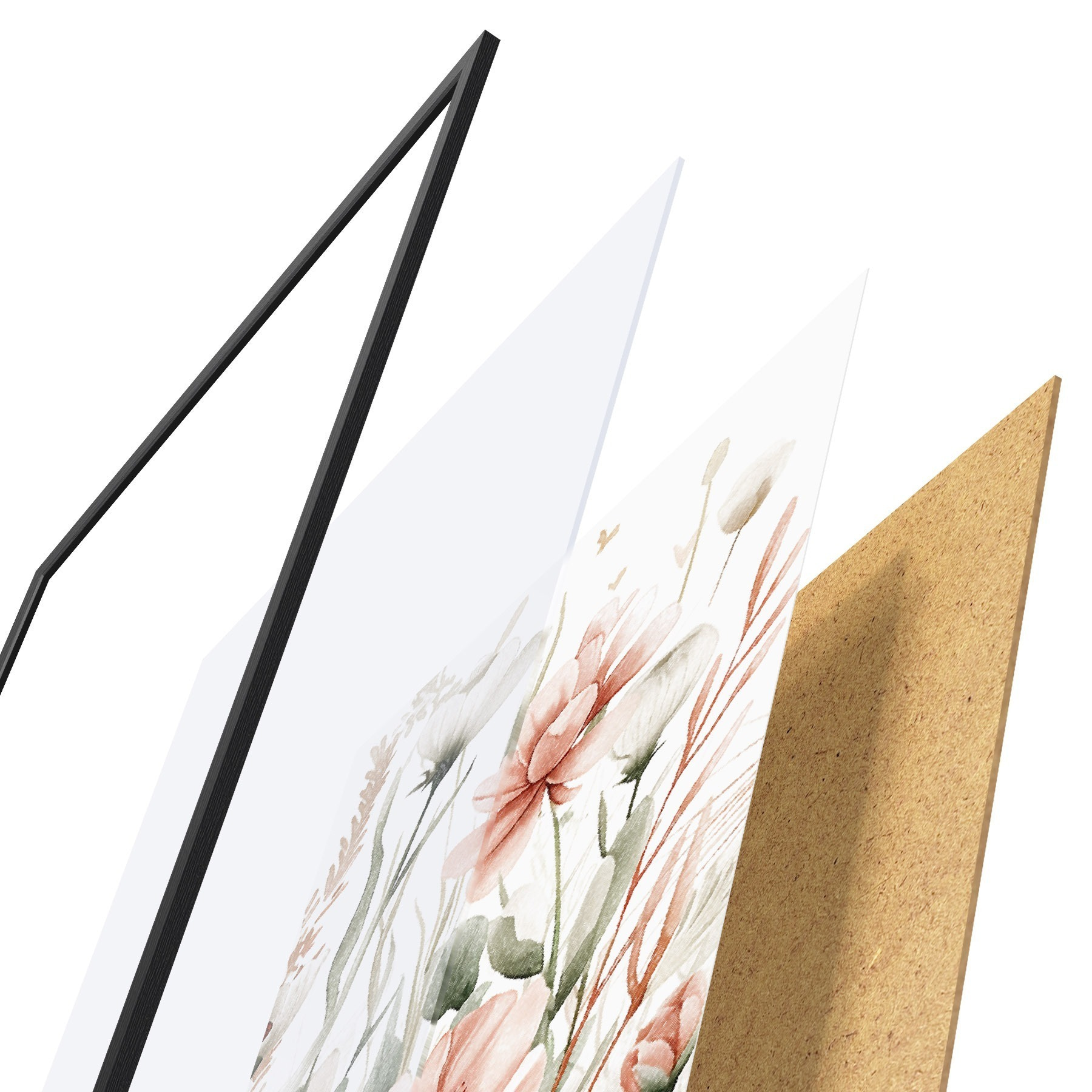 Il poster è composto da cornice, plexiglass, immagine stampata e supporto in truciolato. Il poster può essere immediatamente appeso alla parete grazie ai supporti sul retro.