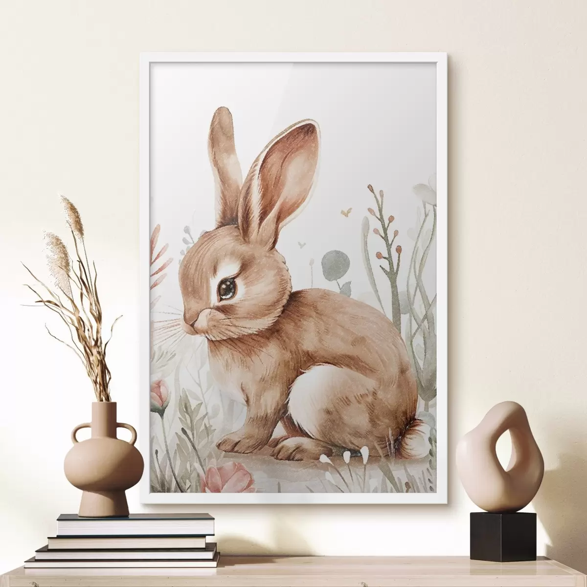 Poster Coniglietto carino tra i fiori, effetto matita Nr f47741
