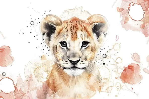Poster Cucciolo di leone acquerellato, effetto matita f47742