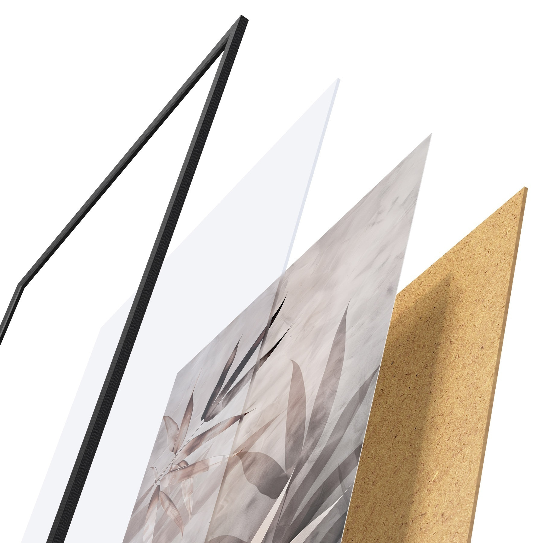 Il poster è composto da cornice, plexiglass, immagine stampata e supporto in truciolato. Il poster può essere immediatamente appeso alla parete grazie ai supporti sul retro.