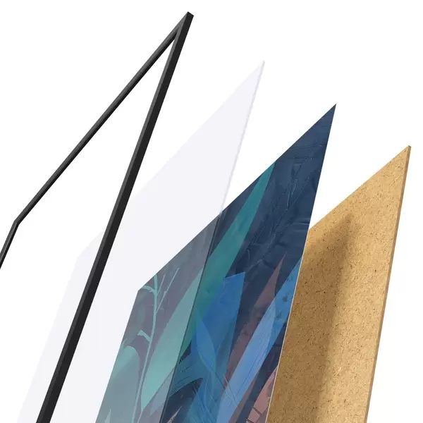 Il poster è composto da cornice, plexiglass, immagine stampata e supporto in truciolato. Il poster può essere immediatamente appeso alla parete grazie ai supporti sul retro.