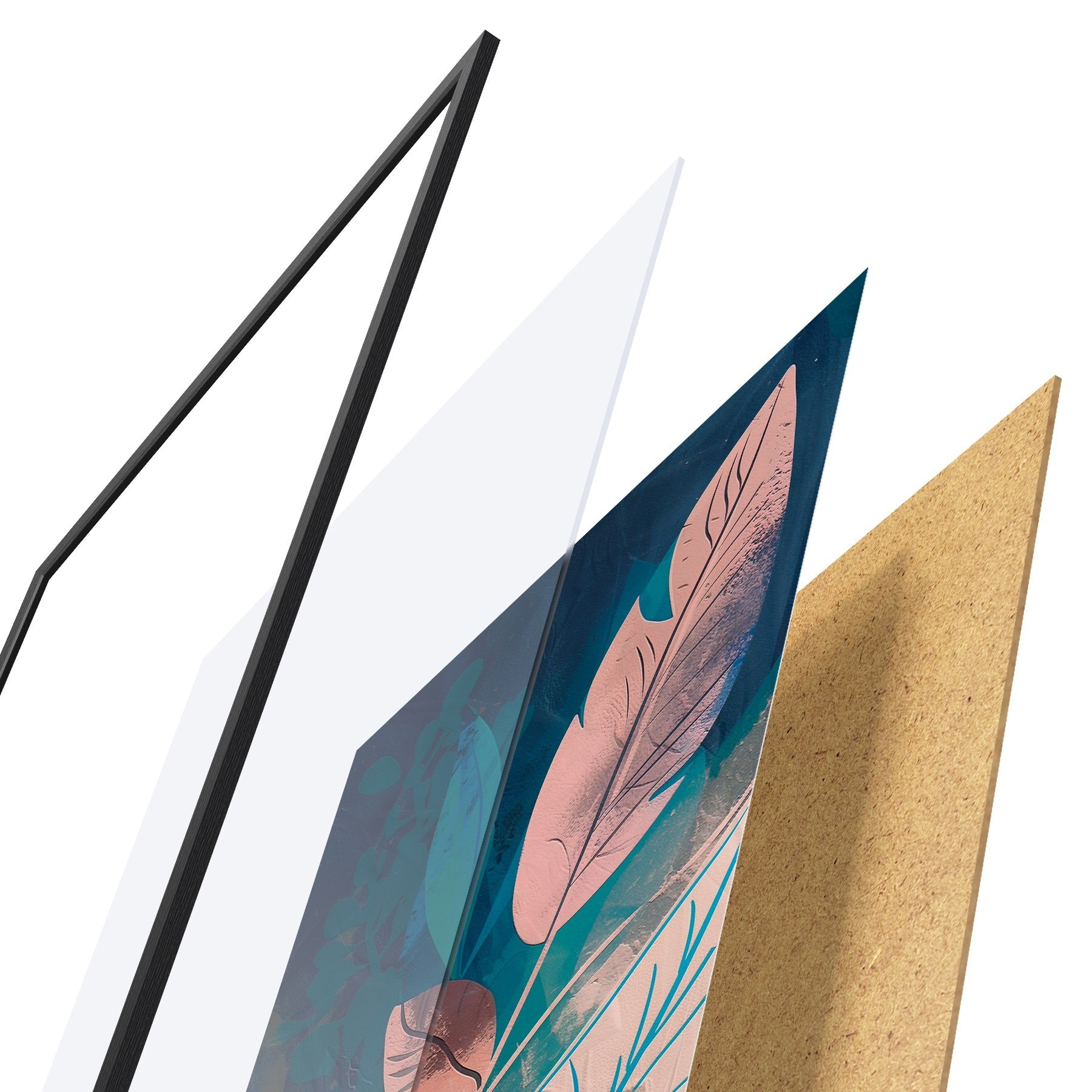 Il poster è composto da cornice, plexiglass, immagine stampata e supporto in truciolato. Il poster può essere immediatamente appeso alla parete grazie ai supporti sul retro.