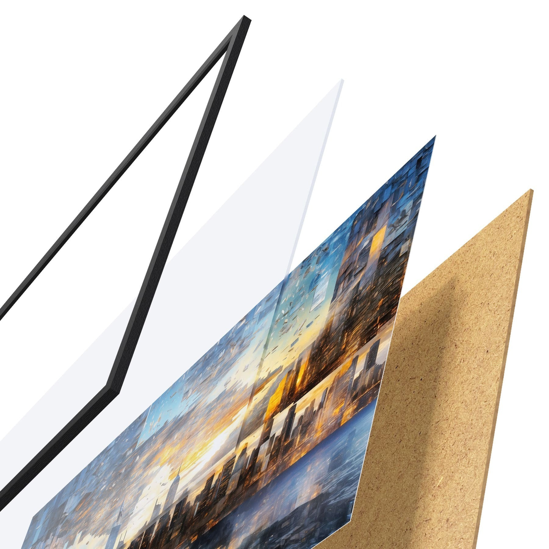 Il poster è composto da cornice, plexiglass, immagine stampata e supporto in truciolato. Il poster può essere immediatamente appeso alla parete grazie ai supporti sul retro.