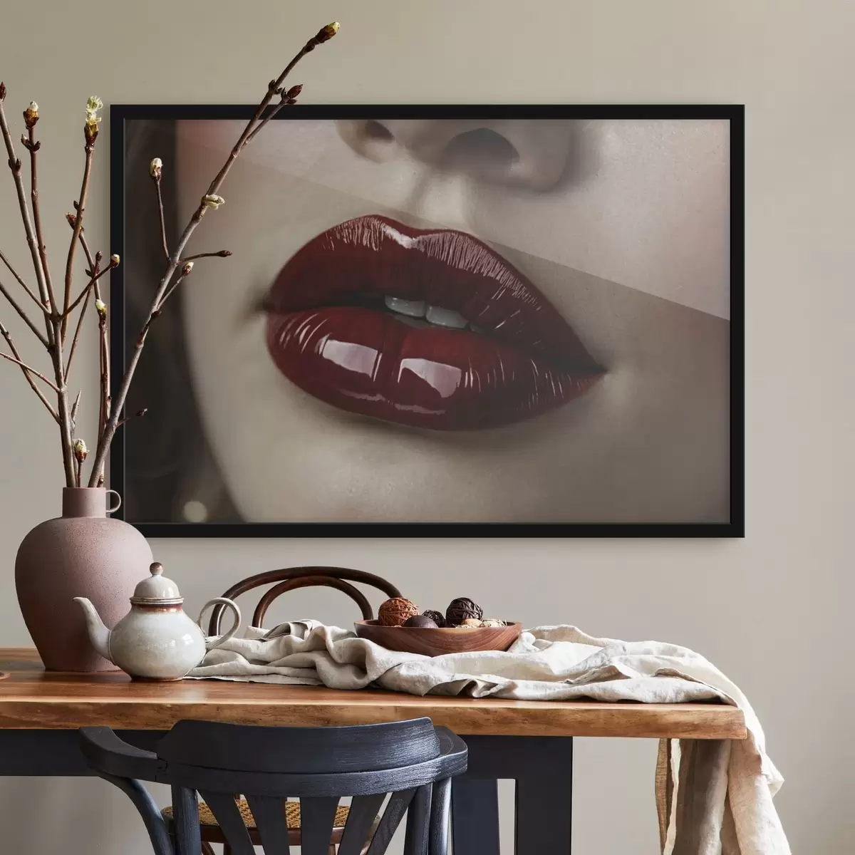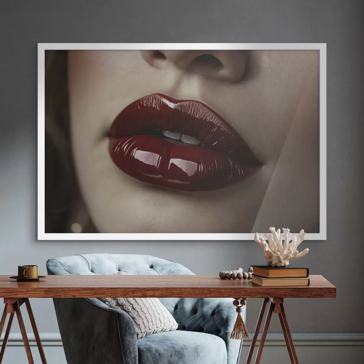 Poster Primo piano di labbra rosse lucide f47772
