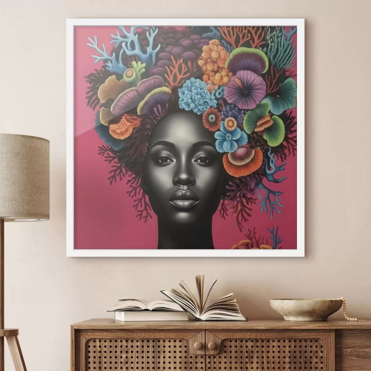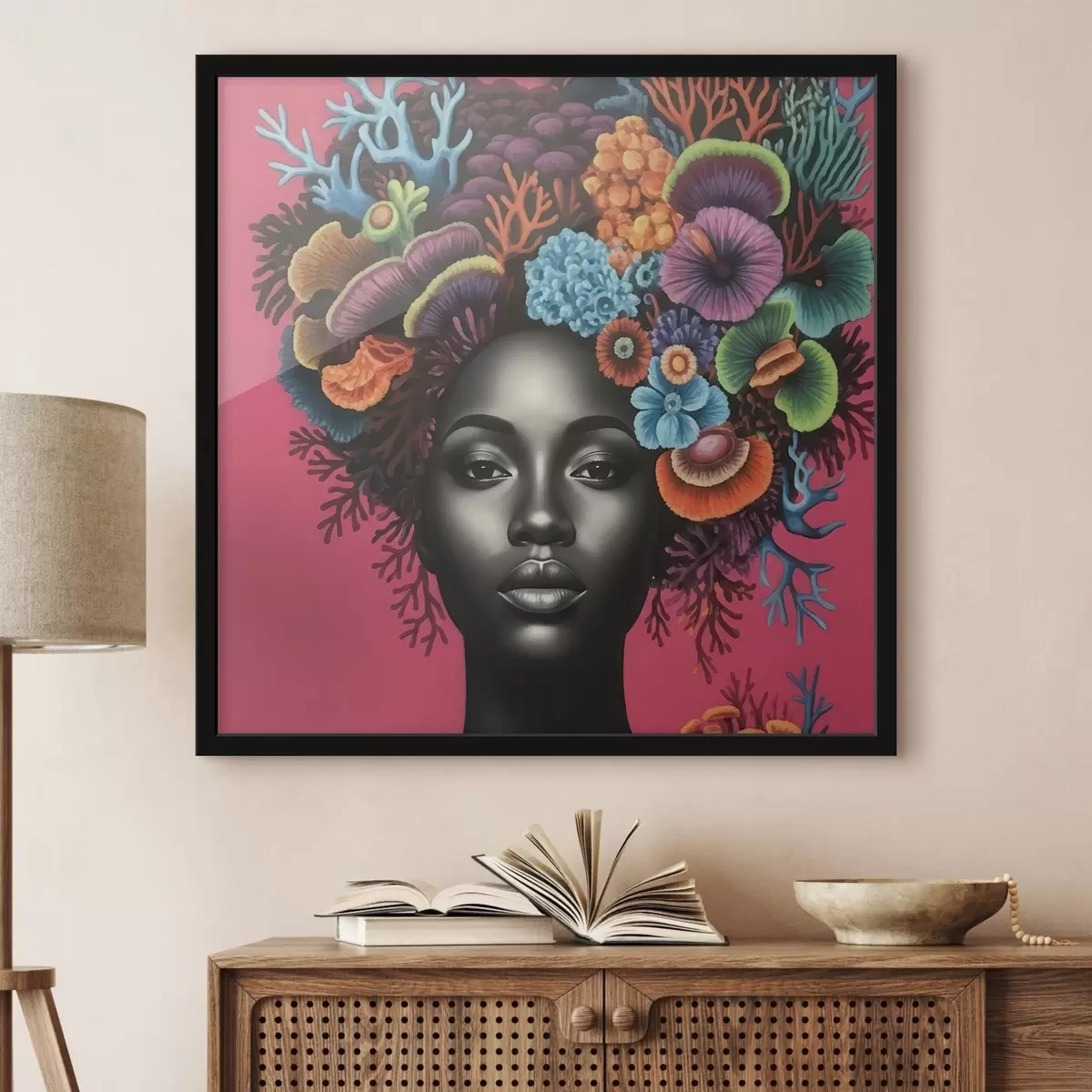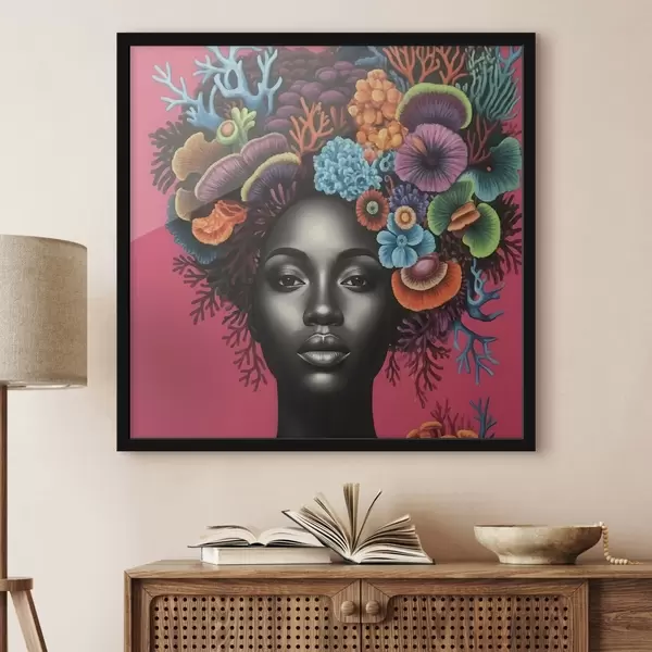 Poster Ritratto psichedelico di una donna con funghi f47786
