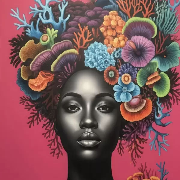 Poster Ritratto psichedelico di una donna con funghi Nr f47786