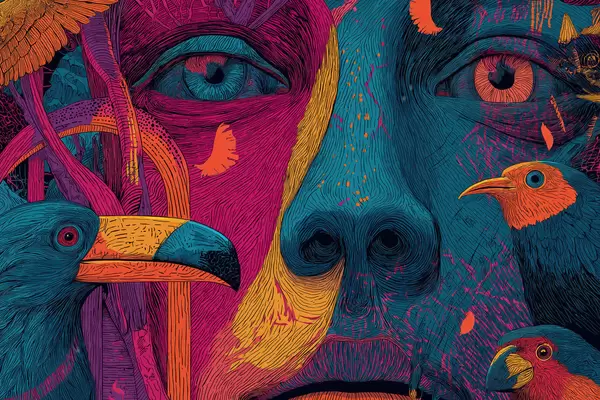 Poster Ritratto psichedelico con uccelli Nr f47789