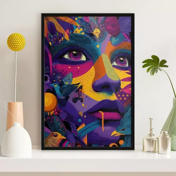 Poster Ritratto psichedelico con uccelli Nr f47790