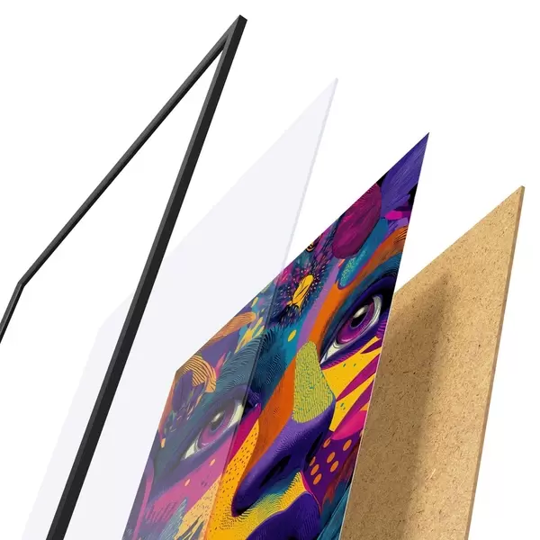 Il poster è composto da cornice, plexiglass, immagine stampata e supporto in truciolato. Il poster può essere immediatamente appeso alla parete grazie ai supporti sul retro.