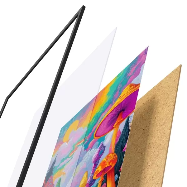 Il poster è composto da cornice, plexiglass, immagine stampata e supporto in truciolato. Il poster può essere immediatamente appeso alla parete grazie ai supporti sul retro.
