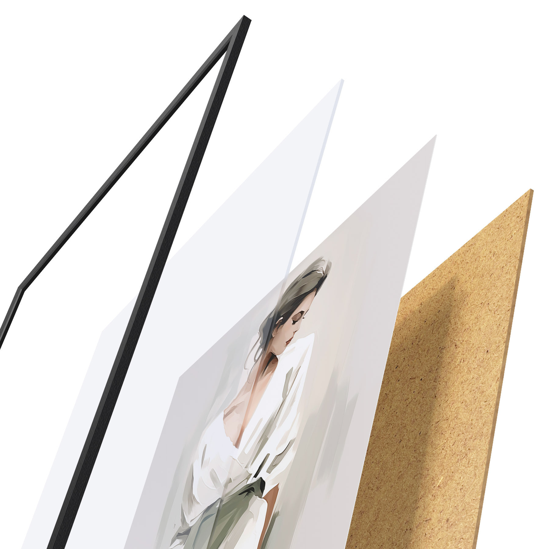 Il poster è composto da cornice, plexiglass, immagine stampata e supporto in truciolato. Il poster può essere immediatamente appeso alla parete grazie ai supporti sul retro.