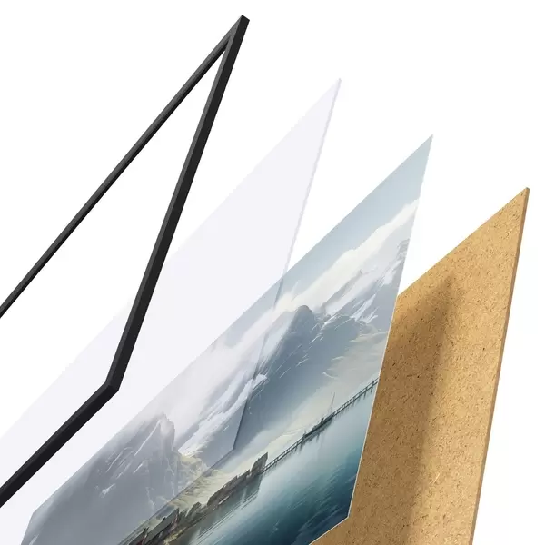 Il poster è composto da cornice, plexiglass, immagine stampata e supporto in truciolato. Il poster può essere immediatamente appeso alla parete grazie ai supporti sul retro.