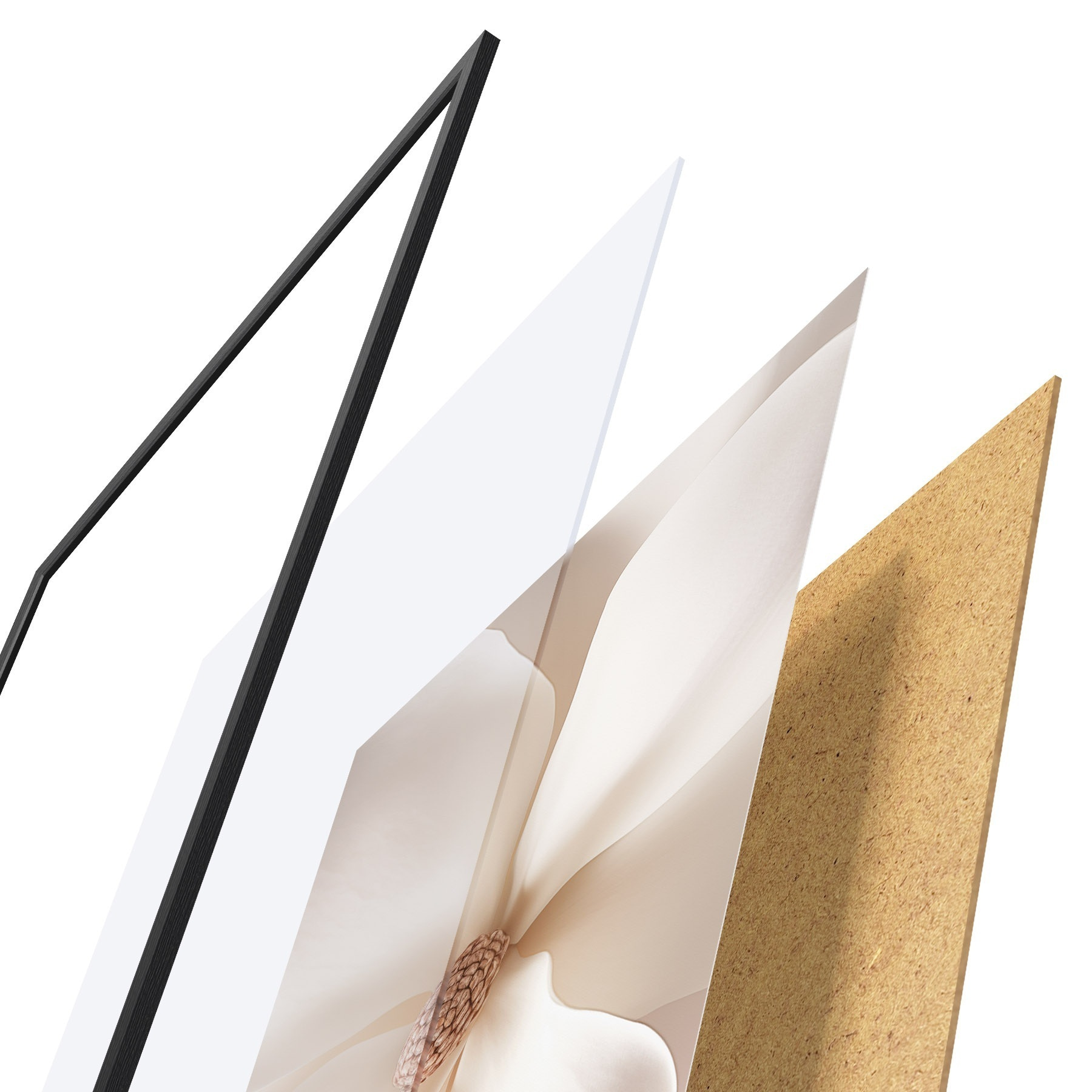Il poster è composto da cornice, plexiglass, immagine stampata e supporto in truciolato. Il poster può essere immediatamente appeso alla parete grazie ai supporti sul retro.